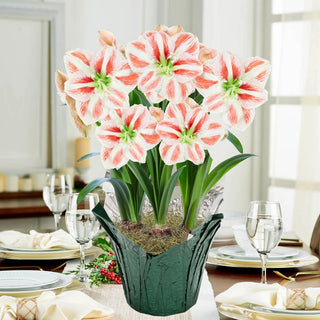 Transform your indoor spaces with stunning amaryllis flowers. Our amaryllis bulbs bloom into gorgeous flowers that are sure to add festive beauty to your home during the winter months. Plant them in a pot and gift them to a loved one. We also offer other holiday gifts, like nature-inspired decor and food. Shop our selection of amaryllis bulbs for sale today.