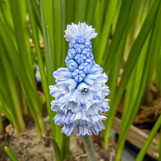 The elegant Grape hyacinth (Muscari) is marked by tightly packed urn-shaped flowers that occur in varied sizes and a number of endearing colors. The flowers bloom in early spring, clustered around the rigid stalks much like grapes. Fall is the best time of the year for planting grape hyacinths and they are very easy to grow. Muscari bulbs are highly adaptable, hardy and do not require rich soil to flourish. A full sun or partly shaded site with well-drained soil is ideal for growing grape hyacinths. Grape hyacinth bulbs are excellent spring flowering bulb for naturalizing, lining the walkways and are wonderful companions to spring bulbs like tulips and daffodils. They are also deer resistant. They're also great for bouquets and cut flower arrangements. Choose from varying shades of blue—from sensual pale blue flowers to dreamy turquoise, even a striking blue-black color. That's not all; we also carry rare pink and white grape hyacinths that will stand out in every garden setting!How to Plant Grape Hyacinths