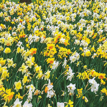 This exciting combination is made up of landscape-size bulbs selected to provide the widest possible range of colour, form and bloom time. A diverse blend of large-cupped, small-cupped and trumpet daffodils is joined by graceful poeticus, split corona and double daffodils—with smaller, fragrant jonquilla and tazetta rounding out the mix. Once established, they will double their number in two years, then again in two more years. Varieties are not individually labeled.