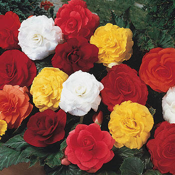 Showy, 4" double blooms in bold hues of red, white, pink, yellow and orange. Sure to enliven shady areas, where few other flowers will thrive. Varieties are not individually labeled.