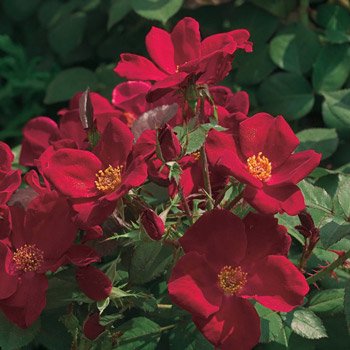 Dazzling colour from spring through fall on a plant with little maintenance is hard to find. But this shrub rose hits it out of the park with a continuous supply of bright scarlet, five-petaled blooms on a plant with amazing disease resistance. Dense, dark green foliage, a rounded habit and eye-catching fiery red colour make this a valuable landscape addition—as a specimen accent, at the back of the perennial bed, or as a friendly fence between neighbours. The vigorous bush practically takes care of itself once established. There's no need for deadheading—spent blooms fall cleanly, so the plant always looks fresh.