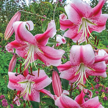 Pink-and-white blooms generously speckled in a deeper pink hue. This Lily Tree is blessed with spectacular colour, fantastic performance and an intense fragrance that's sure to please.
