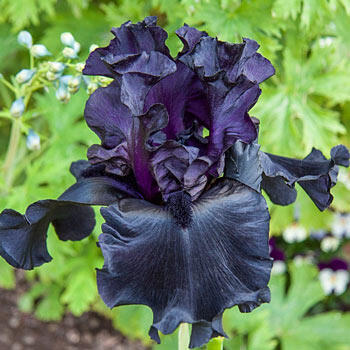 A subtle fragrance and slight bronze tint to its near-black colour add mystery to this bold iris. Not surprisingly, Before the Storm is the winner of a number of iris awards, including the Award of Merit and the Dykes Medal. Its bloom time is long, its blooms are abundant, and once it's established, this incredible iris is drought tolerant too.