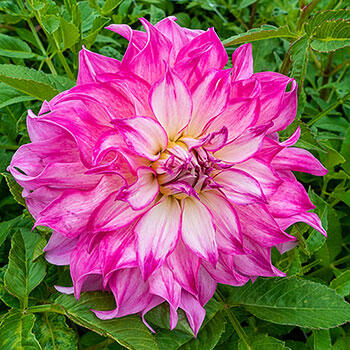 This bicolour variety isn't very common, but it's definitely worth getting to know. The fully double, 6" flowers open white with a pink edge, but with each passing day, the gently twisted petals become increasingly pink. Outstanding in a border or bouquet.