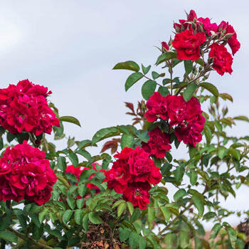 There aren't many fragrant dark red climbers in the world, and since 1958, this proven performer has been the best of them! Its large buds open into tight clusters of large, well-formed, 4–5" blooms on new and old wood, so there's no need to prune off this year's flowers. The full, shapely blooms bear 30–35 deep velvety red petals and contrast beautifully with the glossy, dark green leaves. No wonder it's the rose that couples most often give to each other! Skilled at scaling trellises, arbors and pillars. Spectacular in the garden as well as in floral arrangements. Warm nighttime temperatures produce the best bloom colour.