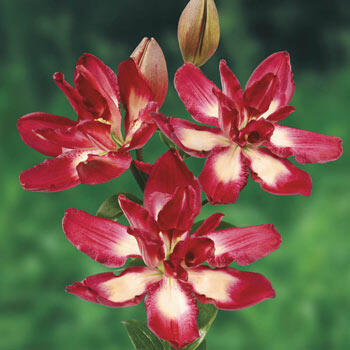Possesses extraordinary flower form, an irresistible fragrance and, for a double lily, a unique colouration. Semi-double 4" flowers are accented by pale red petals with a large, white base.