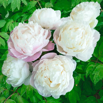 This blush-white double is one of the finest for cut arrangements. As the name implies, the flowers have a gardenia form, growing to 6–6½" across. The winner of many championship ribbons, the exhibition-quality blooms emerge from strong stems and are well clothed in foliage. Very mild fragrance and many side buds.