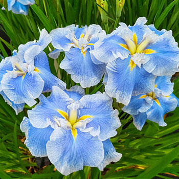 Add a light and airy feel to your water garden for years to come with this big, colourful perennial. Its fragrant, double blooms, which span about 6", are sky blue with yellow highlights near the centre and white banding along the edge.