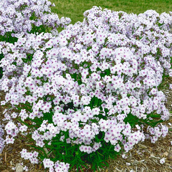 Nearly white flowers with dark pink central stars open in early summer, well ahead of other varieties by 2-3 weeks. They last longer than traditional phlox, too, providing showy colour all the way to the first frost of fall. Phlox 'Opening Act Pink-a-Dot'PP31732