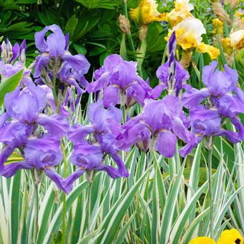 While the violet-blue flowers are charming and fragrant, the striking foliage is what makes this highly prized iris so fascinating. The long, swordlike leaves are 1–1½" wide, and each blade is green with silver stripes. This iris adds dramatic vertical interest to the landscape whether in a group planting or grown as a specimen. As for its scent, it's reminiscent of grape soda! Deer resistant and drought tolerant.