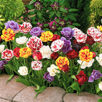 Double your viewing pleasure with these extraordinary double-flowered tulips that resemble low-growing peonies. When planted in large groups, the effect is sensational. Exceptionally large blooms measure a full 4" across and are long lasting. A treasure in any cutting garden! Varieties are not individually labeled.