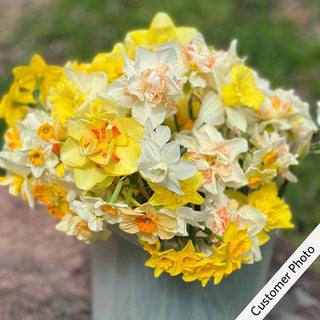 Hand selected to create a brilliant blend of double blooms that last up to two full months in the landscape. Each fragrant mixture contains varieties that bloom from early to late spring in a wide range of shades. Many of the flowers exhibit two colours at once. Varieties are not individually labeled.