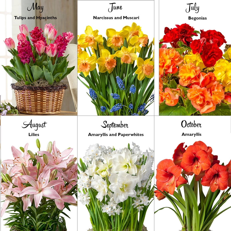 Our legendary Bulb Garden of the Month Club™ delivers premium plants that grow right before your eyes. Talk about a special delivery—a new garden will arrive each month, already sprouting and soon to bloom. Our May garden, featuring a mix of spring favorites, makes a great first impression in its classic woven basket. Additional bulb gardens will arrive in green nursery pots that fit nicely in the original basket. A thoughtful preview letter makes the grand announcement that monthly treasures are on their way. EXCLUSIVE.