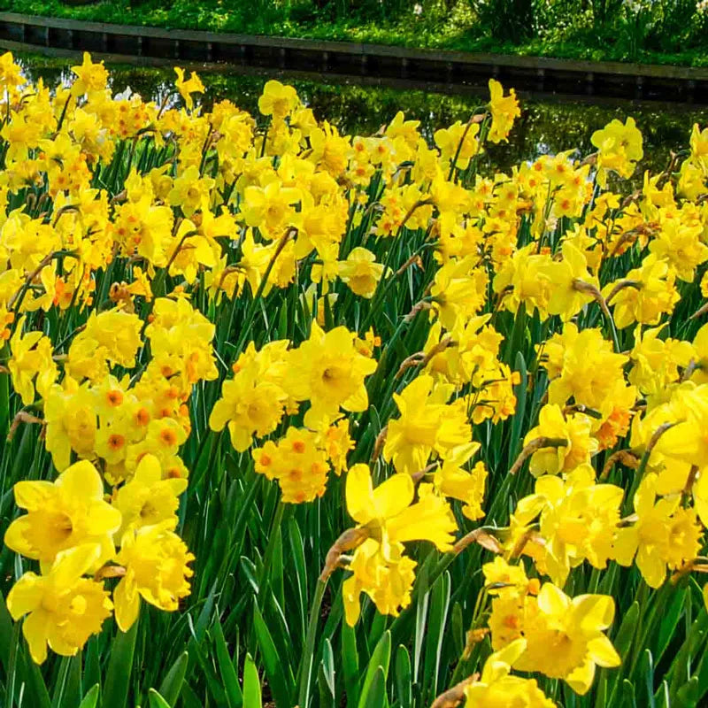 This unique mixture features several yellow daffodil varieties that bloom in sequence to give you three months of continuous beauty. The blooming season starts with a golden-yellow flower that blooms extremely early. In colder areas, it will most likely flower in the snow. Continuing until late spring, you can enjoy a wide array of daffodils in all shades of yellow, with varying bloom forms and heights. Varieties are not individually labeled.