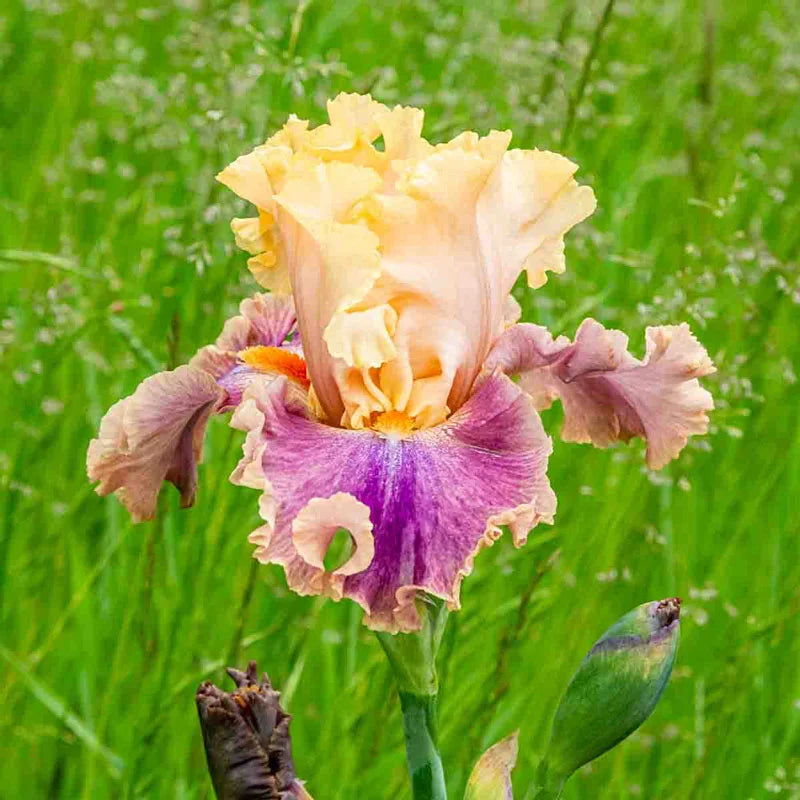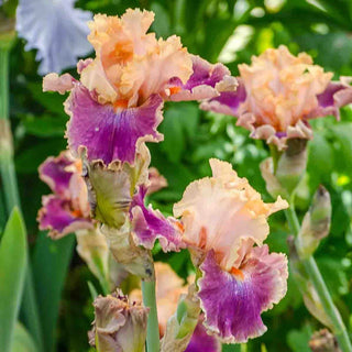 Apricot-toned standards rise above falls flushed with orchid and rose, all trimmed in soft apricot for an Impressionistic blend of hues. Tangerine beards add a bright splash. This award-winning iris mixes beautifully with other perennials.