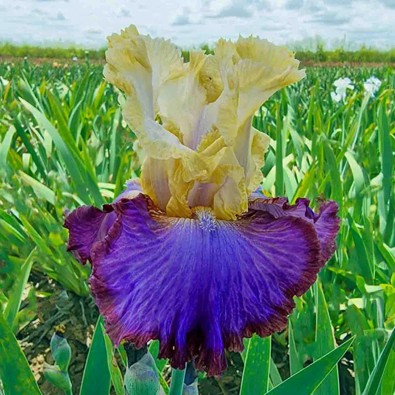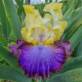 Lemon-yellow standards boast subtle white veining, while the falls showcase a captivating display of electric violet-blue with light blue veins and a striking ¾" ruby red band. The violet-blue beards are tipped with more lemon yellow. Produces up to nine buds per stem, perfect for cutting arrangements.