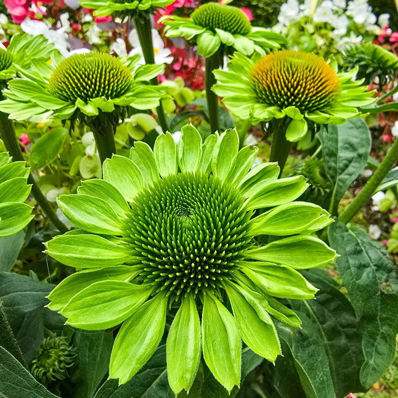 Uncommon lime-green daisylike blooms give this coneflower instant distinction in summer borders and cutting gardens. A bold central cone is framed by a single row of fresh green petals on strong, healthy plants that reach about 26" tall. Deer resistant and drought tolerant once established, it thrives in full sun and reliably draws bees and butterflies with its unusual colour and sturdy, long-lasting flowers.