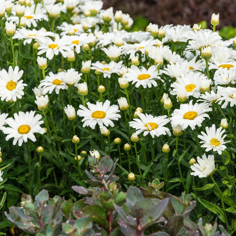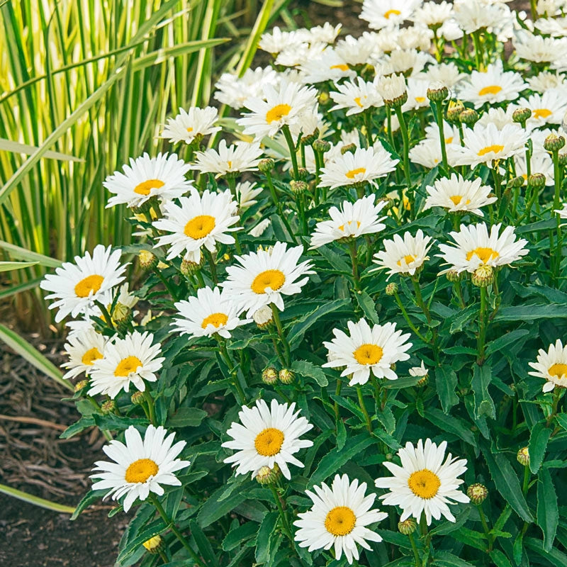 A charming and popular garden classic, Alaska Shasta is like a traditional daisy on steroids, producing lots of the sunny, familiar flowers on each stalk. Butterflies love the white-and-yellow, 3" flowers of this well-behaved and gorgeous hybrid. Displays beautifully in a container or perennial border, where you can enjoy its return each year. A must-have for summertime bouquets and arrangements.