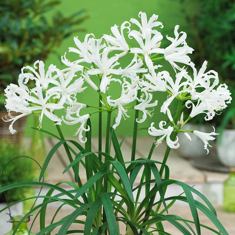 Sprays of pure white, star-shaped blooms are gracefully held aloft on slender but sturdy stems. Narrow, twisted petals curve back to give these scented flowers the look of lilies. An excellent container flower that's also fabulous in a fresh-cut bouquet.