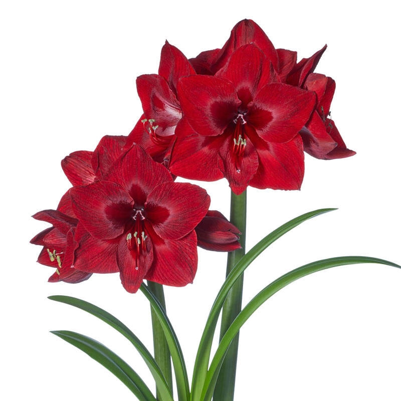 Rising star Red Reality amaryllis boasts rich burgundy blooms on sturdy 18-24" stalks. Give yourself a floral treat with luxuriant blooms having velvety petals. Curved, broad petals give this amaryllis a come-hither look that will have holiday guests ready with questions. A dependable bloomer, it can be forced year after year with proper care.