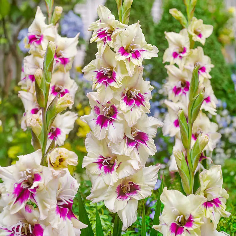 Each pristine ivorywhite floret, spanning 3–4", reveals a striking splash of cerise-pink at its centre, creating an enchanting colour contrast. The ruffled edges along some petals add an extra touch of elegance. Plant these vigorous beauties behind shorter perennials, along fences or in neighbour-facing borders where their height creates natural screening.