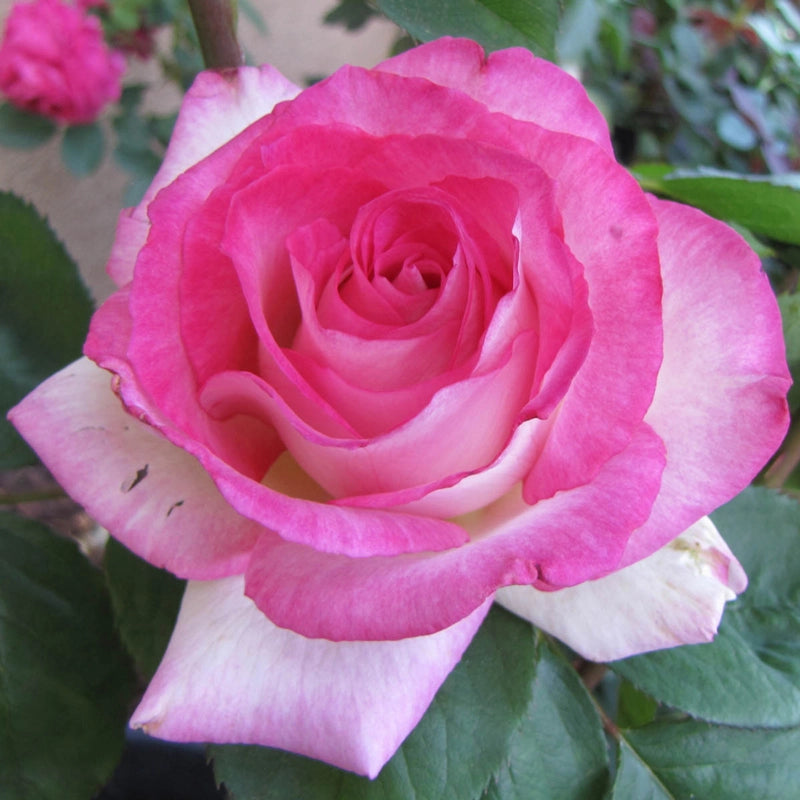 The Angelic Veil Hybrid Tea Rose, a breathtaking fusion of pink and white picotee hues, offers a visual feast for the eyes and a citrus-infused, moderately fruity aroma that rejuvenates the senses. This exquisite variety thrives in zones 6-10, ascending majestically to a height of 2½-6' and spreading out 2-3' with grace. It offers robust resistance against powdery mildew and rust, ensuring its beauty remains unmarred throughout its blooming season from late spring to fall. The rose's upright and slightly spreading growth habit gives it a poised and elegant stance. Each bloom, measuring 3½-4½" in diameter, is a delicate assembly of 25 to 35 petals that weaves a tapestry of softness and colour.