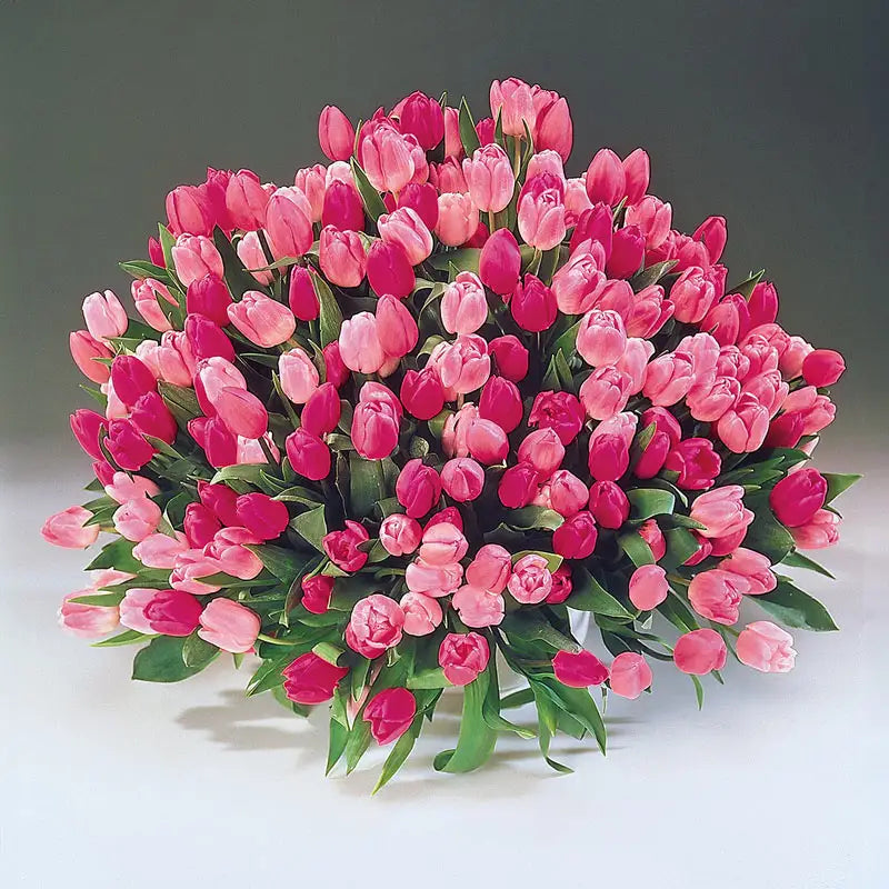 Imagine the effect of these lovely colours grouped together in your spring garden. This living bouquet of fantastic double flowers is a professionally selected blend in shades from a pastel blush to deep magenta-pink. Varieties are not individually labeled.