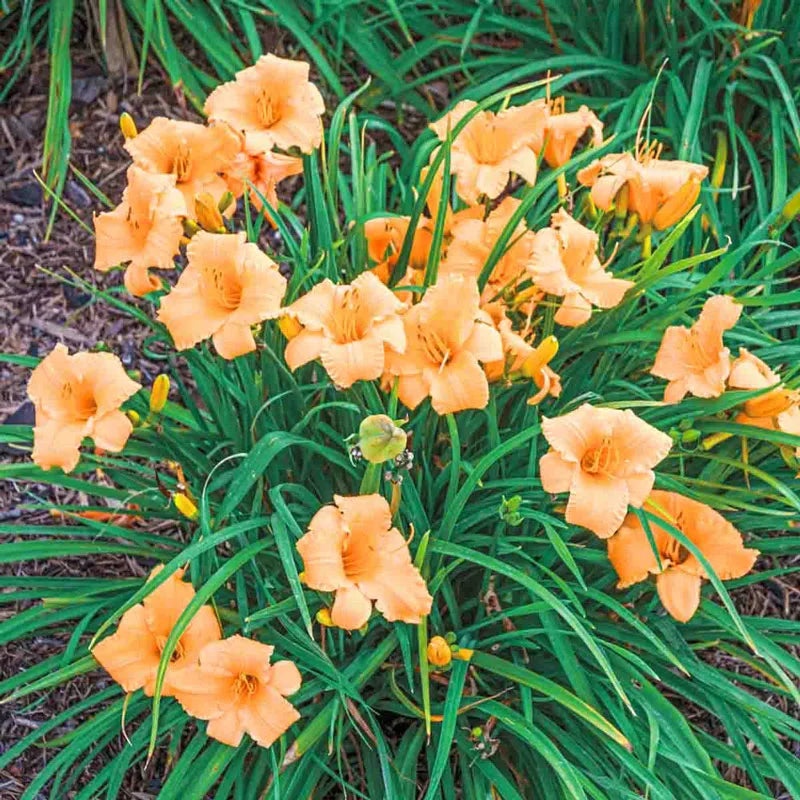 Extra early and eager to set your landscape alight with diamond-dusted colour! This cheerful, 18" award winner makes a splash in front borders. In butterfly gardens, it provides nourishment for early pollinators. One of the most productive daylilies around, it bears loads of petite 4" blooms of lush, soft apricot.
