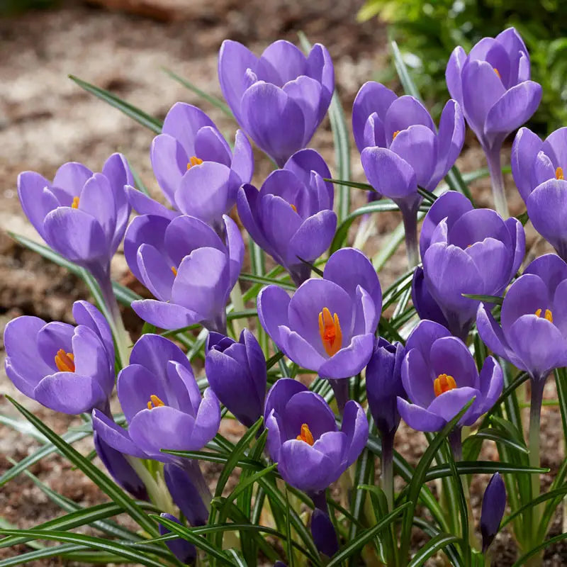 Cloak your garden in a tapestry of vibrant blue- violet, where its clumps of cup-shaped blooms stand as a beacon to bees. With its promise of an early spring spectacle, Aqua Giant Snow Crocus is robust and floriferous, thriving in mass plantings to paint large expanses of colour. Naturalizes extremely well.
