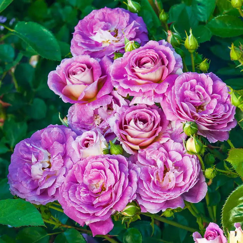 The shapely buds slowly unfurl their 35-petal, fully double flowers until they measure 3–4" across. The petals retain their handsome hues even as they drift to the ground like lavender snowflakes, while the glossy, medium green leaves keep their fresh look throughout the season. Arctic Blue provides very good resistance to common rose diseases.