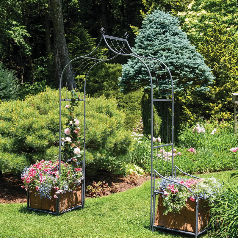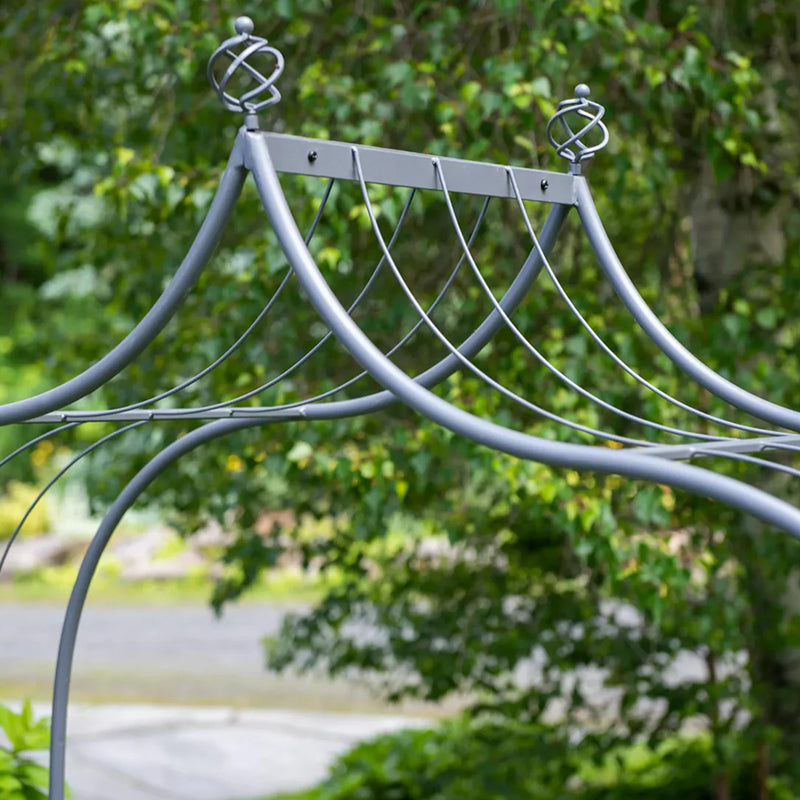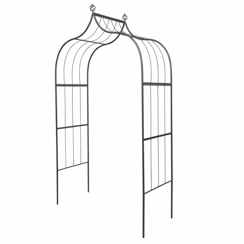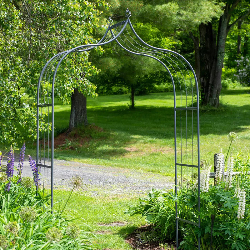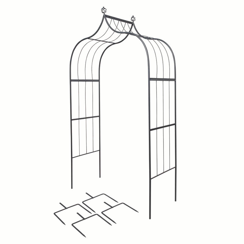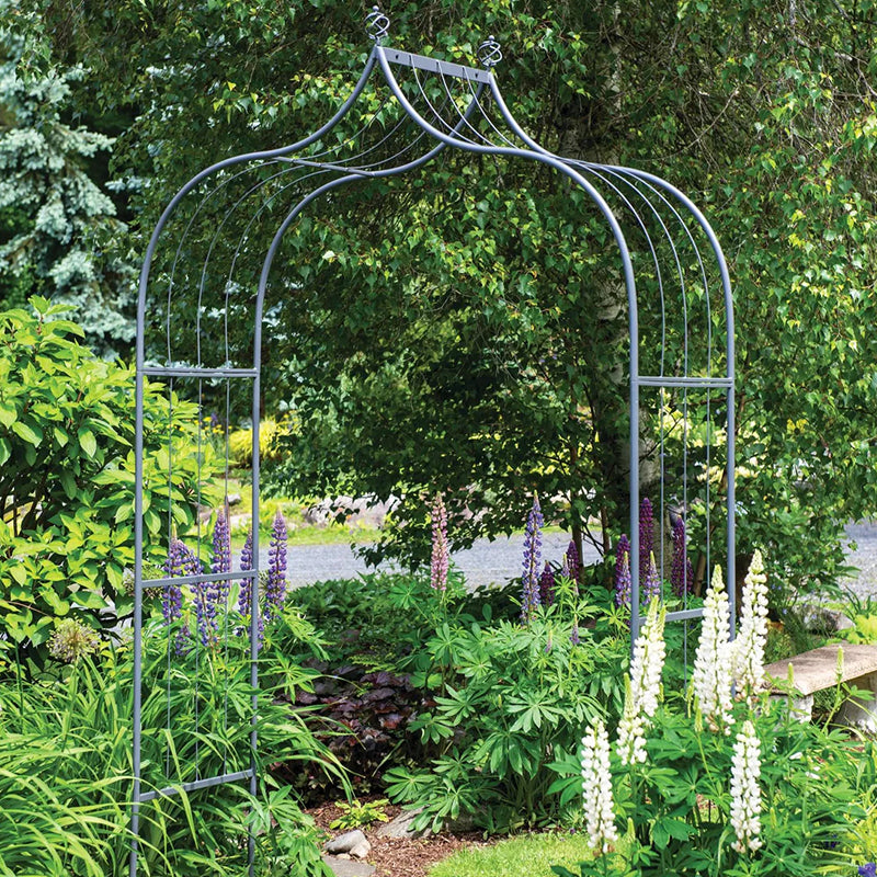 Inspired by Middle Eastern architecture, the elegant and exotic Ariana Arch creates a unique entryway that feels classic and modern all at once, adding an inviting and delighting element to set the right mood when welcoming guests into your garden. Balancing its fashionable elements with plenty of function, the Ariana Arch provides substantial support for annual and perennial flowering vines. Lined with garlands or strung with lights, this arch can also add seasonal flair to your yard décor. And the 55” wide passage leaves plenty of room for wheelbarrows or other gardening supplies to pass through the arch with ease. Made from durable powder-coated steel, the Ariana Arch will add to your garden aesthetic for years! Low-carbon steel, Grey powder-coated finish. 55.25" W x 22" D x 98.5" H