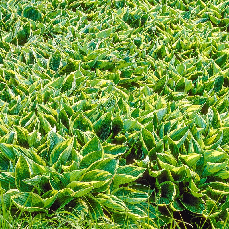 Aureomarginata presents quite a picture in shady garden spaces. From its ribbed, wavy foliage to its exquisitely subtle colouration of mid green leaves with golden-yellow edging, it adds elegant style and plenty of colour to borders, feature beds, shade gardens and containers. It is also used quite successfully as an easy-care ground cover between dense shrubbery and within tree lines. The heart-shaped foliage, purple midsummer flowers and large, upright mounding habit make it a great choice for softening the harsh lines of a wooded area, too.