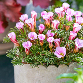 When in bud, the two-tone, swirling pink blooms look like candy canes. Autumn Pink forms in attractive mounds, and even its palm-shaped foliage is decorative, perfect for adding flair to containers or rock gardens. Only a limited quantity of this stunning sorrel is available, so order today! Pot not included.