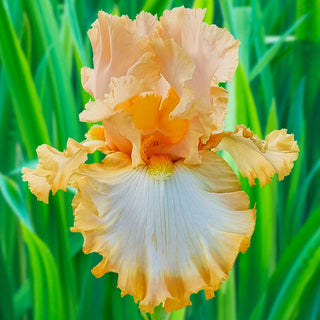 A charming award winner with style and substance, Barbara My Love adds a flourish of colour and a softly sweet fragrance to any midseason garden or landscape display. Standards of pale salmon top white falls edged in a bold shade of orange. This is a robust variety that boasts good branching and a vigorous habit—a must for iris enthusiasts and novice gardeners alike.