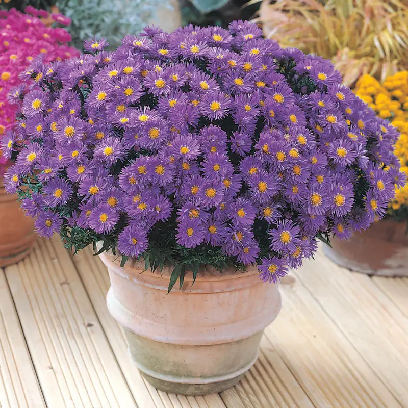 Blue Lagoon is a stunning perennial that brings celestial beauty to any garden. Its delicate, bright blue petals radiate from golden centres, creating a dreamy watercolour effect that mimics the shimmering surface of tropical waters. Hardy and low-maintenance, these prolific bloomers attract butterflies to their plentiful 1½" flowers from late summer and into fall. Perfect for borders, containers and cutting gardens.