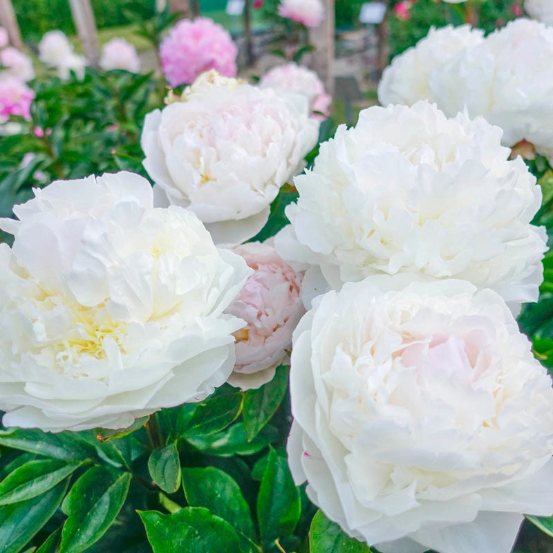 Massive, double blooms of 8-10" wide are Blush Queen's claim to fame. And boy, does it show off those flowers to its best ability! A free-flowering, robust peony, Blush Queen bears an abundance of creamy white blooms delicately touched with a soft pink blush in midseason. Ideal for creating fragrant bouquets and indoor arrangements, it also makes a fine addition to borders and perennial beds. The breathtaking blooms appear atop 3–3½' stems that rest easily amid attractive grey-green, deeply incised foliage. First introduced in 1949, Blush Queen has been a garden favourite for many years.