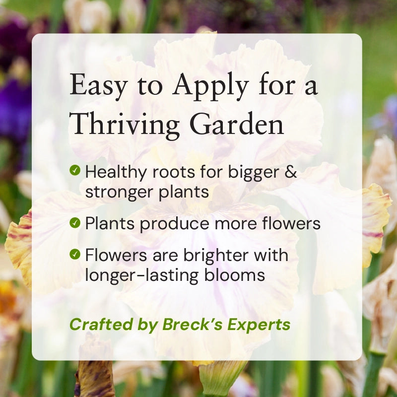 Mix this specially formulated (4-4-2) plant food in the soil when you plant your irises and each spring season to give them the best possible start. Our all-natural iris food provides a rich blend of nutrients that release steadily into the soil for the healthiest foliage and most spectacular blooms. A 1 lb bag will cover approximately 20 square feet.