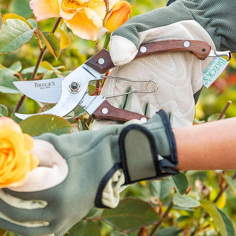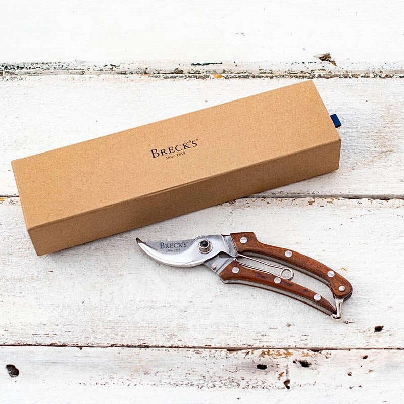 Pruners with an heirloom look feature stainless steel blades and solid rosewood handles. Presented in a sturdy gift box. (¾"h, 2½"w, 8"l )