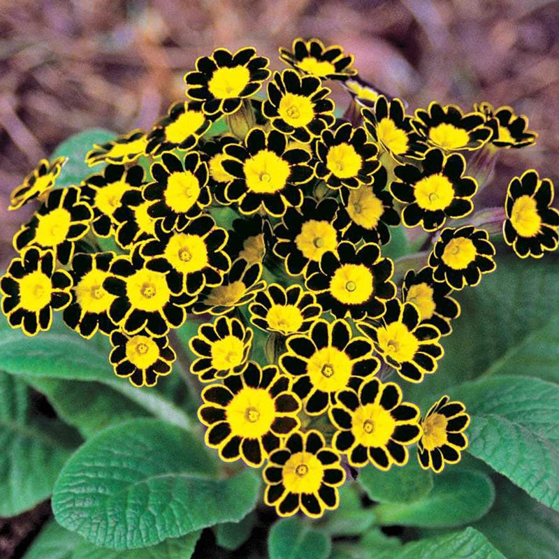 The petite blooms create a captivating display of deep brown to nearly black, encircling a sunny yellow heart and edged with more yellow. As a result, Bumble Bee Primrose mirrors the enchanting patterns of the plant's namesake insects. Standing a quaint 6-8", this perennial is ideal for container life or as a border gem, blooming from spring's arrival to the cusp of summer. The delicately scented flowers are also excellent for underplanting.