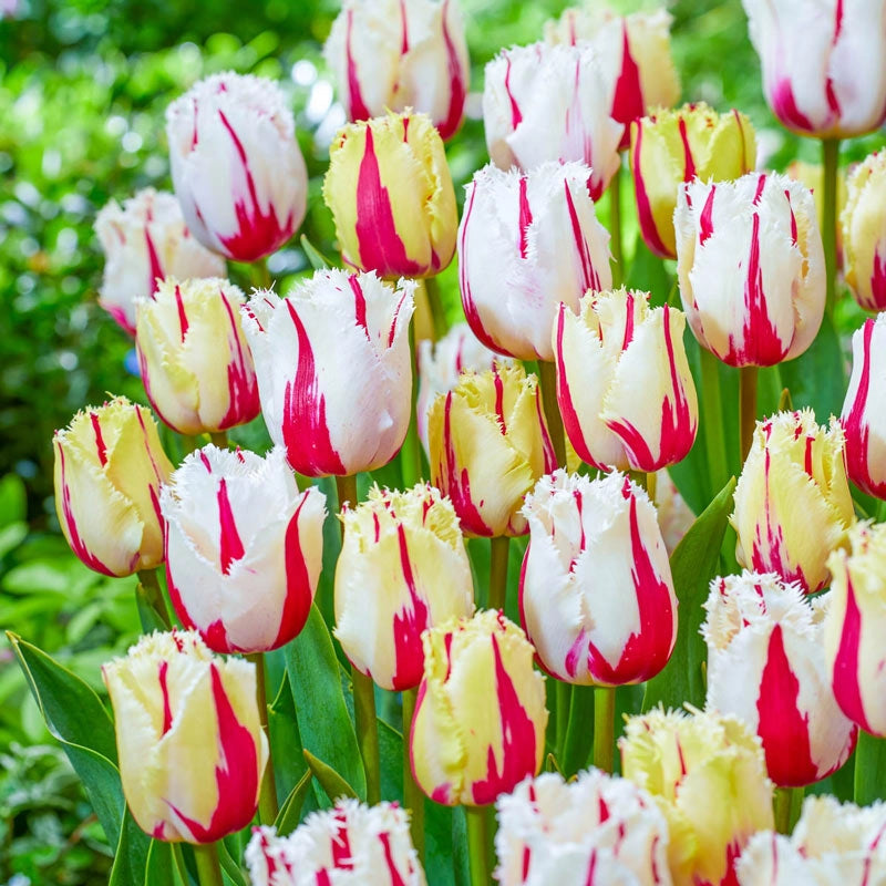 With its colourful streaks, fantastic form and fringed petals that shimmer in the breeze, Burning Fire puts on a blistering springtime show. Flowers start out creamy yellow with red flames, then turn white with bold, dark purple-red flames as they mature. On some days, you're likely to see both "versions" at the same time!