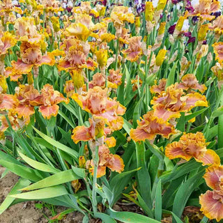 Simply one of the finest iris plants you’ll find, combining strong, upright stems with healthy foliage that holds up beautifully through the season. The 4½" ruffled blooms blend warm ginger tones with brick red falls and orange beards.