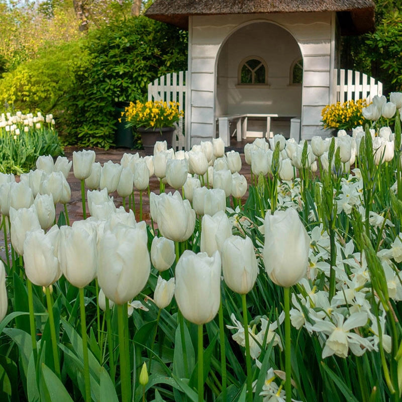 Large, creamy white, egg-shaped blooms are simply breathtaking when planted en masse. Use this variety to create a sophisticated statement, or plant some in an existing display to make other colours pop.