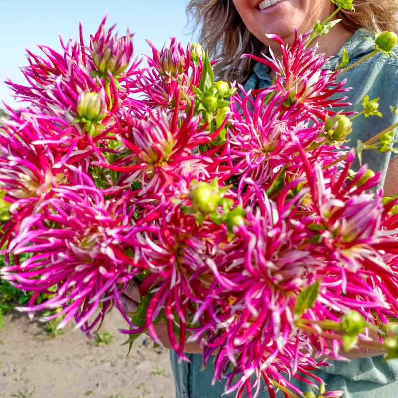 Colourful blooms reach 5" across and consist of short, creamy white petals and long, magenta-red petals with hints of white. A spectacular addition to any summertime border. Only a few of these unique beauties are needed to create a fabulous floral arrangement!