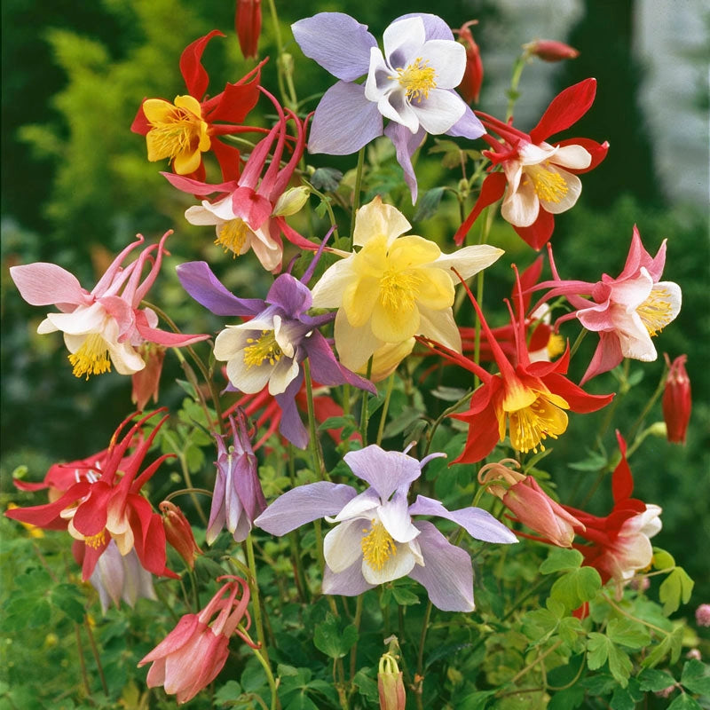 Large, 2-3" blooms are perfect for a sunny border, cutting garden or naturalized area. These reliable plants--McKana hybrids--bear charming, bonnetlike flowers in shades of blue, yellow, rose and red above mounds of fernlike leaves. A customer favourite for generations. Varieties are not individually labeled.