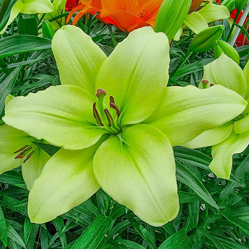 Lay your eyes on these beauties, resplendent in greenish yellow—a rare colour for lilies. Large 6½" blooms grow up to six per stem, returning reliably each year. These stunning perennials thrive in well-drained soil and reach 4 feet at maturity, creating a statuesque presence in the garden. The perfect choice for cutting beds and feature gardens. Their long-lasting flowers open progressively over several weeks, extending the display time well into summer. Paired with deep pinks or oranges, it makes the entire scene pop!