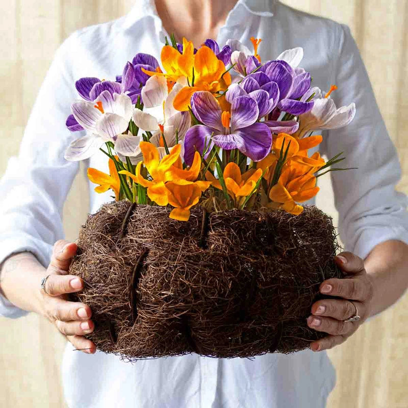 Looking like it was plucked from the crook of a tree, our bird's nest basket arrives packed with premium crocus bulbs, all rooted and ready to sprout. In just a few weeks the cheerful blooms will appear in a stunning mix of classic crocus colors. EXCLUSIVE.(5¼"h, 9" dia.)