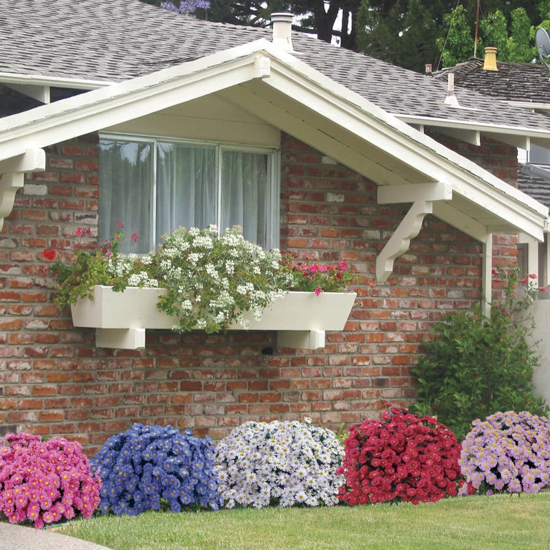 Classic daisy-shaped flowers with yellow centres are surrounded by delicate petals in shades of purple, pink, red or white. For all varieties, pot not included.