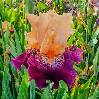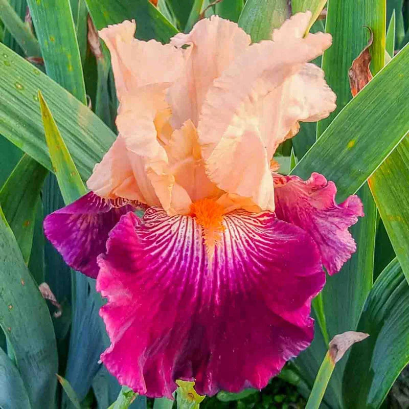 Yet another Breck's exclusive from our own iris breeding program, Dark Before Dawn was a consistent rebloomer during our trials. The two-tone flowers display a new colour scheme among reblooming irises: peachy-pink standards and reddish-purple falls, flanking orange beards.
