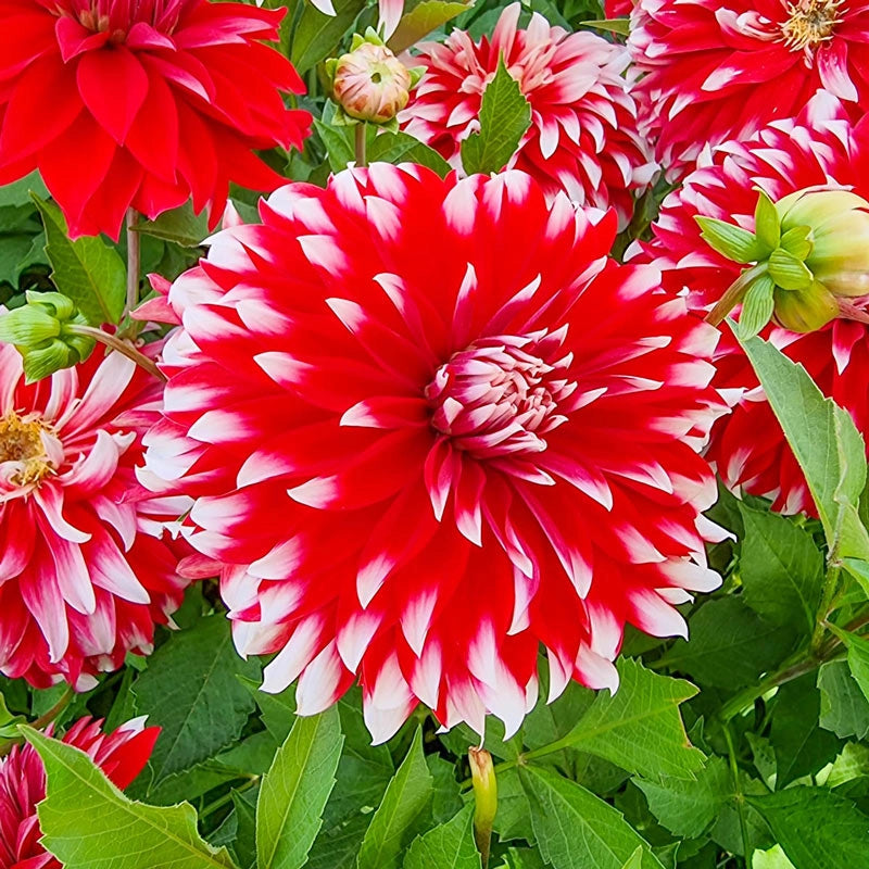 Immerse yourself in the splendour of the natural world with this captivating, fiery red dahlia. Each petal of the fully double, 8" blooms is graced with eye-catching, white accents that add to its distinctiveness. Wherever it is used, Davos promises to make a remarkable impression.