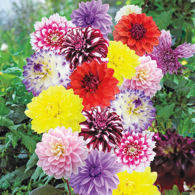 When it comes to dahlias, it’s hard to pick a favourite. That’s why this blend, hand picked by our Dutch bulb experts, includes Tartan, American Sun, Hapet Blue Eyes, Emperor, Bracken Ballerina, and Misses Miley dahlias that will delight garden visitors with their vibrant colours and eye catching forms. Plant this deluxe blend in the cutting garden and reap one unique arrangement after another. Varieties are not individually labeled.